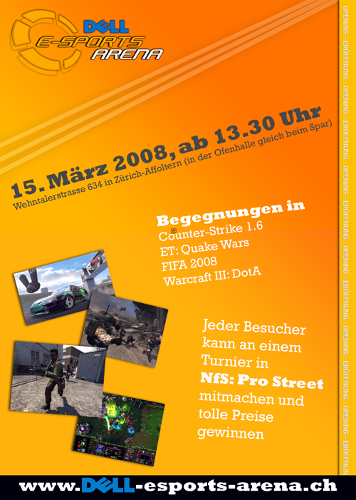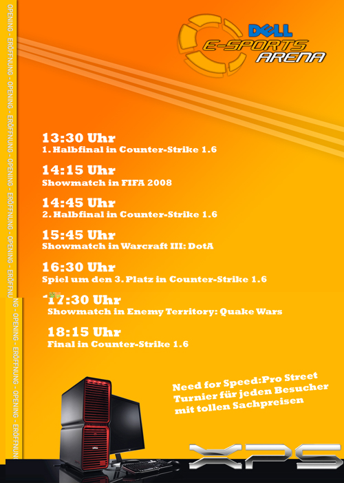 Dell E-Sports Arena wird am 15. März (Samstag) stattfinden. Neben spannenden Show-Games, einem Turnier und Wettbewerben wird noch einiges geboten. Weitere Informationen zum Eröffnungsevent und zur Location selbst werden noch folgen. Streicht euch aber bereits heute dieses Datum fett im Kalender an, denn jeder E-Sport interessierten Person wird genügend geboten, dass sich eine Anfahrt zur Besichtigung der