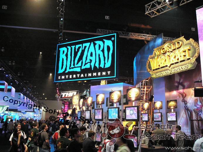 Hier noch ein Bild vom Blizzard Stand, genauer gesagt dem World of Warcraft Stand. Wie unschwer zu erkennen ist konnte man an genügend PCs das neue Addon "Burning Crusade" anzocken.