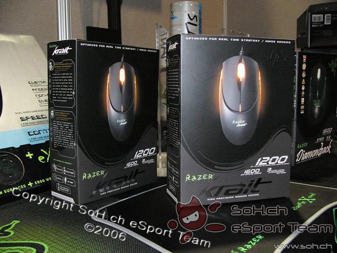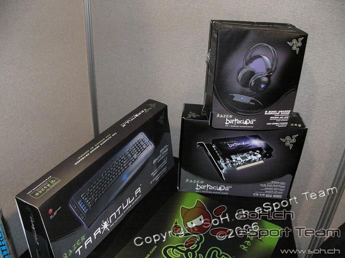 Beim kleinen aber feinen Razer Stand haben wir die neue Razer Krait gesehen, die im nächsten Monat erscheinende Tastatur Tarantula und die Sounkarte mit perfekt abgestimmten Headset testen können. Der erste Sound Check hörte sich sehr vielversprechend an.